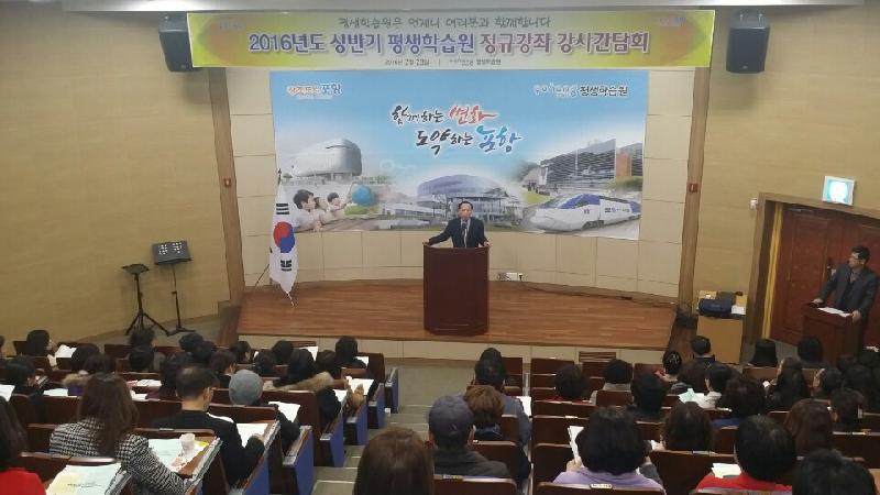 포항시 평생학습원(원장 황병한)은 지난23일 평생학습원 3층 소강당에서 2016년도 상반기 평생학습원 정규강좌 강사 150명이 참석한 가운데 상반기 강사 간담회를 가졌다. 정규강좌에 출강하는 강사는 어르신 과정 36명, 일반성인 과정 56명, 청소년 과정 14명 여성문화회관 60명, 덕업관 5명, 호동관 10명 등 총 181명이며, 읍·면·동 자체에서 실시하는 평생학습 강사 250여명은 별도로 관리하고 있다.