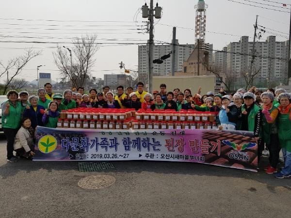 오산시 새마을부녀회는 27일 오산시 새마을회관에서 ‘다문화와 함께하는 된장만들기’ 행사를 개최했다. 이날 행사는 오산시의회 의원 및 다문화 체험자, 새마을부녀회원 50여명이 참석해 자리를 빛내줬다.
