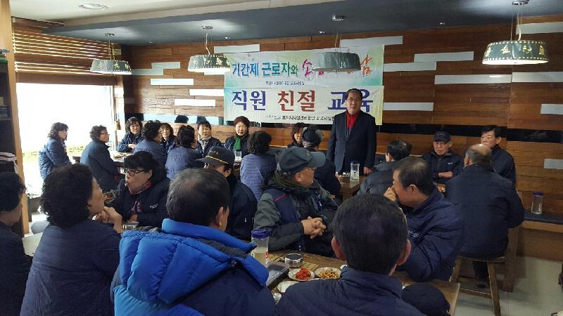 포항시시설관리공단에서는 지난 2월 24일(수) 시청사 기간제근로자 27명과 “소통의 날”을 가졌다. 이번 소통의 날은 기간제근로자와 교류의 자리를 통해 현장근무자들의 다양한 의견을 청취하고 건의 및 애로사항에 대한 개선방안을 찾아 활기차고 즐거운 직장을 만들고자 마련됐다. 또한 “고객에게 감동을!시민에게 행복을!” 이라는 슬로건에 발 맞추어 고객이 편안하고 기분좋게 이용할 수 있는 시청사를 만들고자 직원친절 교육의 시간도 가졌다. 포항시시설관리공단 이사장(김흥식)은 “일선에서 맡은 바 소임을 다하고 있는 현장근로자의 노고에 감사드리며, 앞으로도 자긍심을 가지고 본연의 업무에 최선을 다해주길 바란다.”고 당부했다.