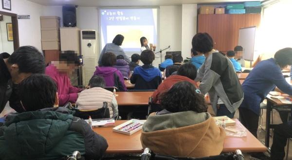 의정부시보건소는 지난 22일 녹양동에 위치한 밀알선교단 세미나실에서 의정부시 밀알복지재단 2개소 지체장애인, 지적장애인 25명을 대상으로 작업치료를 실시했다.