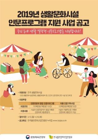 4월 16일까지 생활문화시설 인문프로그램 지원 사업 참여 기관 모집