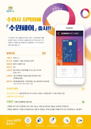 수원시가 충전식 선불카드형 지역화폐인 ‘수원페이’를 오는 4월 1일 출시한다.