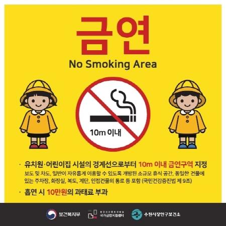 수원시보건소 관계자는 “그동안 어린이집·유치원 내부 경계까지가 금연구역이었으나, 출입구와 건물 주변에서 흡연할 경우에도 간접흡연이 발생한다는 의견에 따라 금연구역을 확대한 것”이라며 “간접흡연에 취약한 영유아들이 건강한 환경에서 자랄 수 있도록 시민들의 협조를 부탁드린다”고 말했다.
