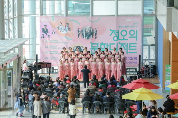 용인시가 오는 11월까지 매월 마지막주 수요일 시청 1층 로비에서 무료공연 ‘정오의 문화디저트’를 열기로 하고 지난 27일 올해 첫 공연을 진행했다.