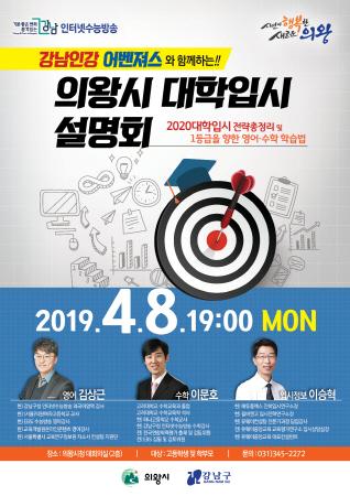 의왕시는 오는 4월 8일 오후 7시 시청 대회의실에서 2020학년도 대입 전략 설명회를 개최한다.