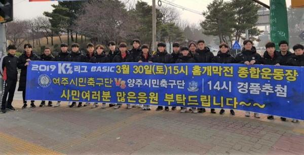 여주시민축구단은 지난해 시즌에서 양주시민구단과의 두 경기에서 1무1패를 기록, 올 시즌에선 반드시 승리하겠다는 각오로 체력과 전술훈련 등 맹훈련으로 팀워크를 다지고 있어, 박진감 넘치는 한판승부가 예고되고 있다.