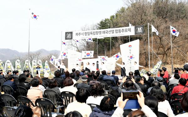 최종환 파주시장은 “오늘의 대한민국, 한반도 평화도시 파주가 존재하는 것은 결코 그냥 주어진 것이 아니며 그 밑바탕에는 선열들의 피와 눈물의 대가가 서려 있음을 알아야한다”며 “이 자리가 선열들의 숭고한 정신을 되새기며 시민 모두가 한마음 한 뜻으로 새로운 미래, 희망을 여는 출발점이 되기를 바란다”고 말했다.