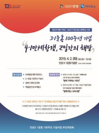 안성시는 안성3·1운동 100주년을 기념하기 위해 오는 4월 2일 오전 9시부터 오후 3시까지 안성3.1운동기념관 일대에서 기념행사를 개최한다.