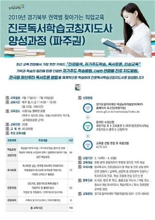 2개 과정으로, 파주권에서 진행하는 ‘진로독서학습코칭지도사’ 과정은 오는 4월 8일까지 모집한다. 포천권 ‘아동스피치지도사’ 과정은 4월 11일까지다. 교육 인원은 각 과정별로 20명이다.