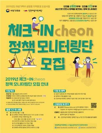 인천시 정책 및 성주류화 확산에 관심 있는 인천시민 및 인천시 거주자라면 누구나 지원가능하며, 선발된 50여명에게는 소정의 활동비와 성평등 정책 교육 등이 제공된다.