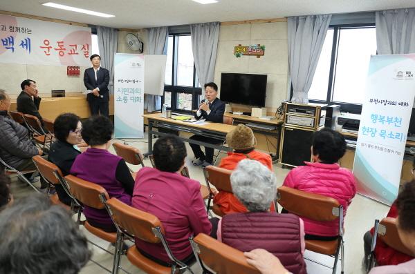 장덕천 부천시장은 지난 28일 역곡3동 대현청실경로당, 소사본동 성지아파트 옹벽 상부 도로를 방문해 시민과 대화의 시간을 가졌다.