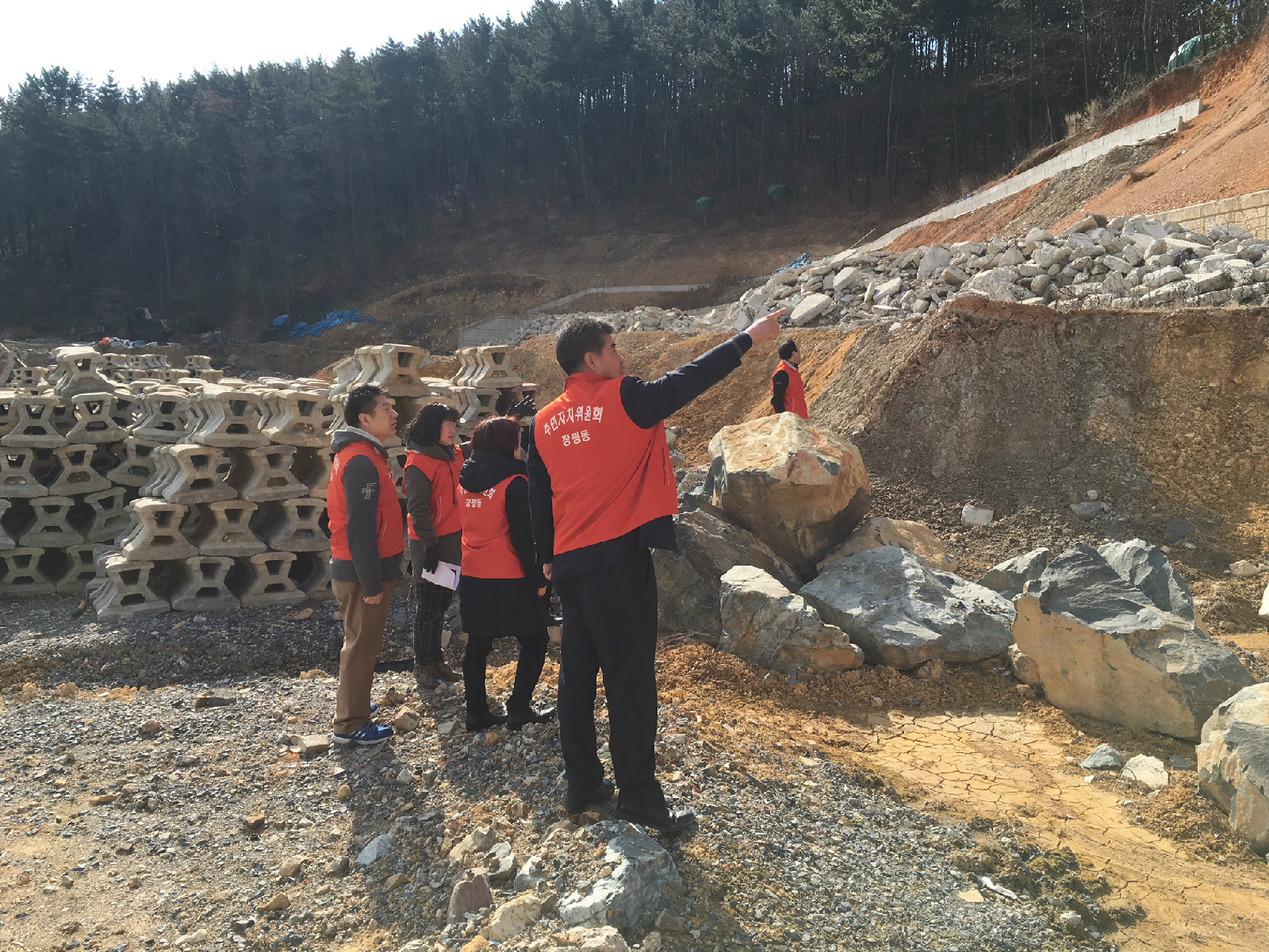 이날 활동은 장평동 관내 대형공사현장 및 집중호우로 인한 법면유실 사고 발생 지점(장평동 산166-4번지 일원)등 5곳을 직접 방문하여 안전 실태를 점검했다.