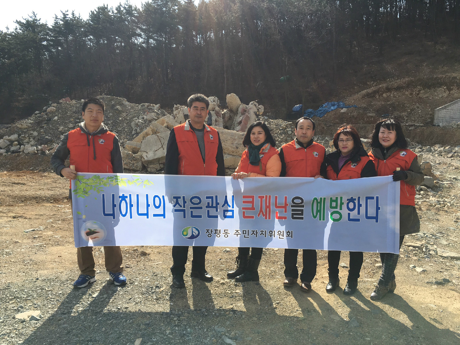 장평동 주민자치위원회는 2016년에도 해빙기 재해예방활동, 산불예방 캠페인, 여름철 물놀이 안전 캠페인 등 주민들의 안전을 위해 지속적인 활동을 할 예정이다.
