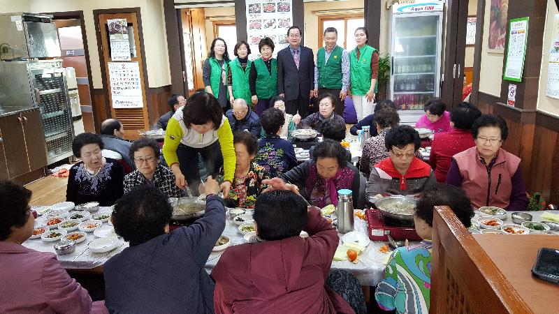 김순태 회장은 “추운 날씨에도 불구하고 어르신들이 많이 참석해 주시고, 또맛있게 드시는 모습을 보니 감사하고 기쁠 따름이라며, 환절기 건강 잘 챙기셔서 오래오래 건강하고 즐겁게 생활하시기를 바라고, 앞으로도 계속해서 어르신들을 대접할 수 있는 기회를 만들도록 노력하겠다.“고 소감을 전했다.