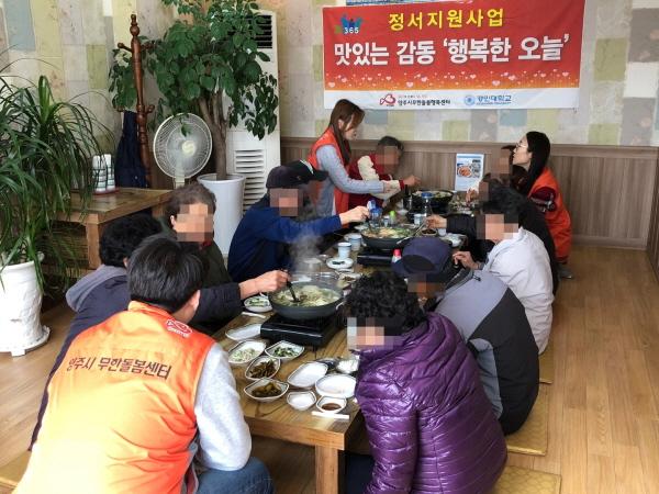 양주시무한돌봄행복센터는 지역 내 저소득 취약계층을 대상으로 분기 1회 외식지원 사업을 실시함으로써 여가활용과 정서함양의 기회를 제공하는 등 따뜻한 지역사회 분위기를 조성하는데 앞장서고 있다.