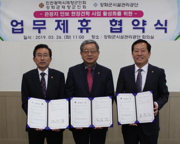 강화군시설관리공단은 인천광역시재향군인회, 강화군재향군인회와 함께 지난 26일 공단본부 회의실에서 강화군의 안보 현장견학 활성화를 위한 업무협약을 체결했다.