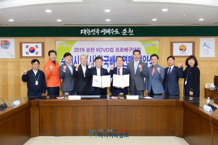 협약식에는 허석 순천시장, 김윤휘 (사)한국배구연맹 사무총장 등 관계자 10여명이 참석했으며 모든 시민이 행복한 평생체육도시 활성화를 위해 양 기관이 적극 협력하고 대회의 성공적 개최를 다짐했다.