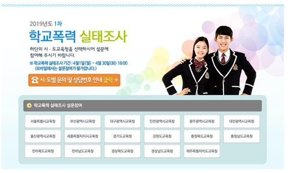 ‘2019년 1차 학교폭력 실태조사’는 전국시도교육감협의회 주관으로 한국교육개발원에 위탁해 전국에서 동시에 진행한다.