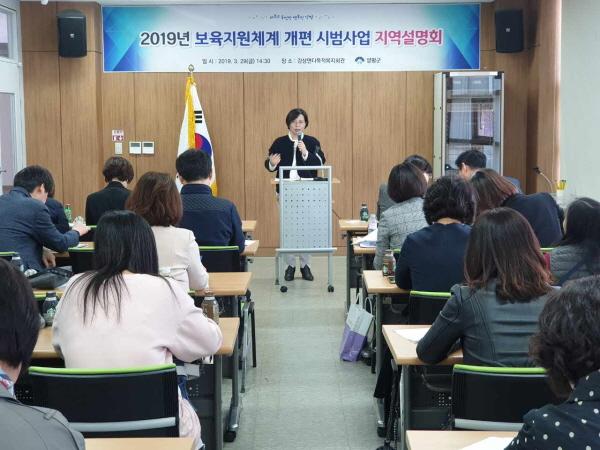 양평군은 지난 3월 29일 강상다목적복지회관에서 보육지원체계개편 시범사업 어린이집 원장을 대상으로 지역설명회를 실시했다.