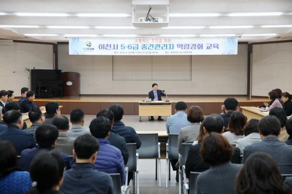 이천시는 지난 3월 28일부터 이틀간 시청 1층 소통큰마당에서 5,6급 360여 명을 대상으로 중간관리자의 역할에 대해 특강을 실시했다.