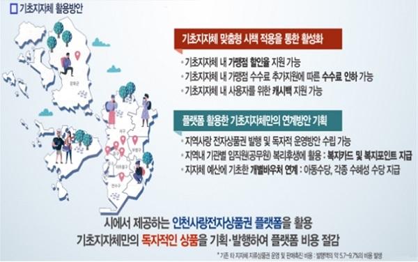 인천e음 전자상품권은 인천시 각 군·구에서 사용할 수 있는 플랫폼을 제공하고, 각 군·구에서는 시가 지원하는 플랫폼을 활용해 자체 실정에 맞는 상품권 운영방식을 구성해 운영하게 된다.