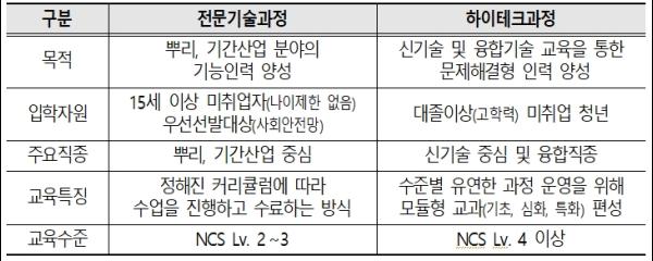 폴리텍은 신산업분야 직업교육 기능을 확대할 방침이다. 하이테크과정도 점차 늘려 나간다. 2018년 20개 과정의 545명 교육 규모를 2020년까지 38개 과정에 1,000명 수준으로 확대한다.