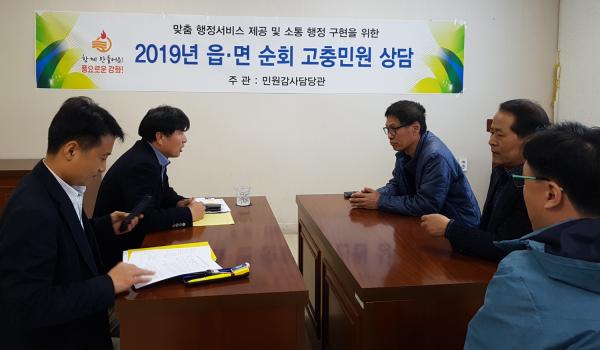 읍·면 순회 고충민원 상담제는 매월 1~2개 읍·면을 순회하며 민원인의 권리 및 이익을 침해하거나 불편·부담이 된 행정행위 및 행정처분에 대해 시정을 요구하고, 소극적인 행정행위 등으로 인한 고충을 상담하고 해결하는 제도다.