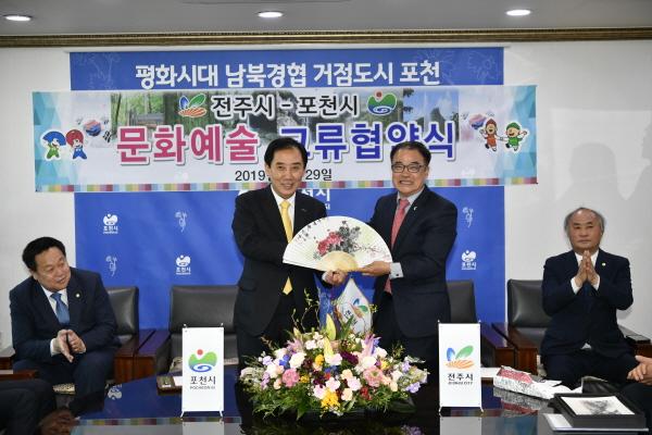 포천시는 전주시와 지난 3월 29일 포천시청에서 양 도시간 문화예술분야 교류 확산을 위한 협약을 체결했다고 밝혔다.