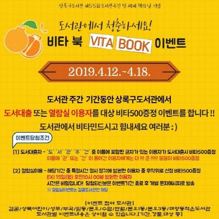 안산시 감골도서관은 4월 도서관주간 및 세계 책의 날을 맞아 해당 기간 동안 도서관을 찾는 시민들을 대상으로 비타 북 이벤트를 진행한다.