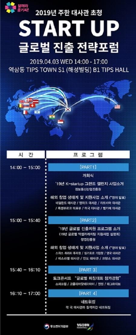 중소벤처기업부는 오는 3일 12개국 주한 외국대사관을 초청해 국가별 창업생태계와 창업지원 프로그램을 소개하고 국가별 시장진출 정보를 공유하기 위한 ‘창업기업 글로벌 진출전략 포럼’을 개최한다.