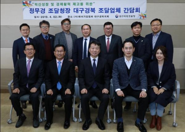 정무경 조달청장은 2일 대구광역시 달서구 벤처기업협회 대구경북지회에서 관내 창업·벤처기업, 우수조달기업, 해외조달시장 진출유망기업, 다수공급자계약기업 등 12개 사를 초청해 간담회를 갖고 기술력 있는 중소기업의 공공조달시장 진입·판로 확대 방안을 논의했다.