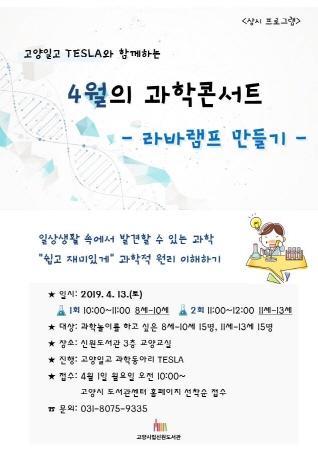 고양시 신원도서관은 매월 둘째 주 토요일에 어린이들의 과학적 호기심을 자극하고 어린이들이 과학의 기초 원리를 쉽게 익힐 수 있는 ‘2019년 과학콘서트’를 운영한다. 4월부터 매월 참여자를 모집하며 모집 인원은 8세에서 10세 15명, 11세에서 13세 15명으로 총 30명이다.