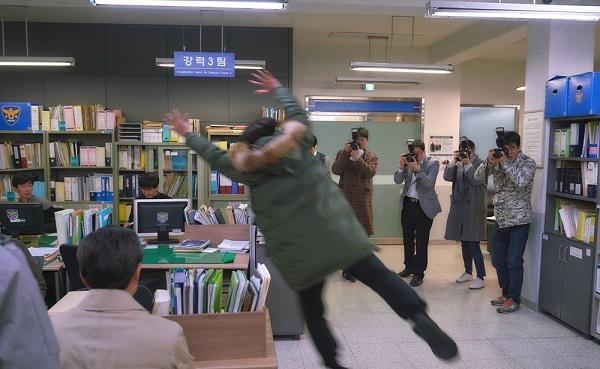 또한 카메라를 든 기자들의 셔터 세례에 맞서 몸을 날리는 서보걸의 모습도 포착돼 시선을 강탈한다. 카메라 셔터 공격으로부터 대호를 온몸으로 막아서며 ‘대호지킴이’로 변신한 보걸의 절박한 몸짓이 사진 속에 그대로 담겨 있어 폭소를 유발한다.