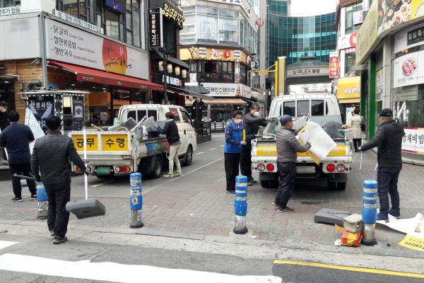 부천시는 쾌적한 가로환경 조성을 위해 지난 3월 21일과 28일 상동 세이브존과 중동 현대백화점 먹자골목에서 불법유동광고물 정비를 실시했다.