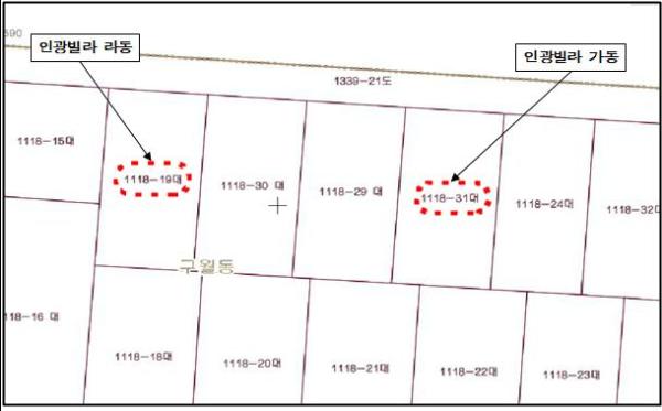 인광빌라는 1989년 준공입주 당시 건축업무를 대행한 법무사의 실수로 ‘가’동과 ‘라’동의 지번이 서로 바뀐 채 등기권리증에 기재되면서 30년이 지난 현재까지도 지번이 정정되지 못한 상태로 살아가고 있다.