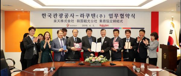 한국관광공사와 라쿠텐주식회사는 3일 공사 서울센터에서 일본인 개별관광객 유치증대를 골자로 하는 업무협약을 실시했다.