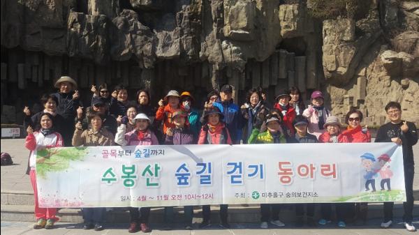 인천 미추홀구 숭의보건지소가 수봉산 숲길 둘레길 걷기 동아리 운영을 시작했다.