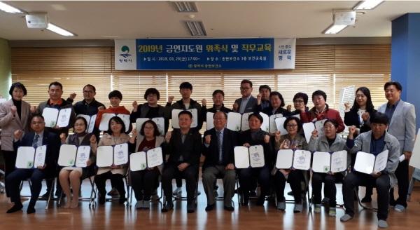 평택시 송탄보건소는 지난 3월 29일 교육실에서 바르게살기운동 평택시협의회 및 중앙자율방범순찰대 회원 41명을 2019년도 금연지도원으로 위촉하고 간담회를 실시했다.