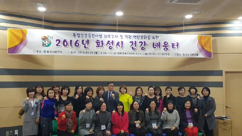 화성시 보건소는 100세 건강시대를 이끌 내·외부 보건인력의 역량강화를 위해 ‘2016 건강배움터’를 열고 노인 건강관리 담당자를 교육했다.