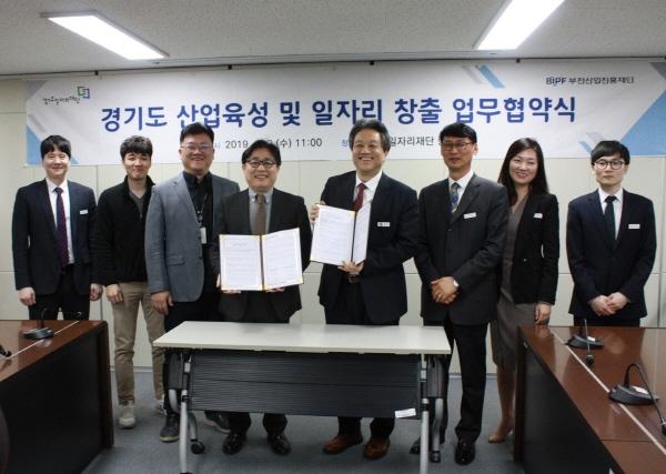 경기도일자리재단과 부천산업진흥재단이 지난 3일 청년IT 선도인력 양성을 위한 일자리 협업체계 구축을 위해 손을 맞잡았다.