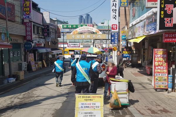 부천시는 지난 2일 오후 2시 심곡본동 소재 청과물시장 주변에서 불법주차, 불법노점, 적치물 근절을 위한 관?경 합동 캠페인을 실시했다.