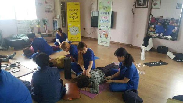 2017년부터 3년째 실시하고 있는 이 프로그램은 기초건강관리 서비스와 기본마사지, 아이시티, 폼롤러마사지, 초음파치료 등을 이용한 근육이완요법으로 이용대상은 65세이상 어르신, 장애인, 독거노인 등 취약계층의 건강을 위한 재활봉사서비스이다.