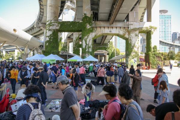 지난 2003년 첫 개장한 ‘뚝섬 아름다운 나눔장터’는 이듬해인 2004년부터 매주 시민들이 직접 재활용품을 사고파는 공식장터로 자리잡고 있다. 2018년까지 총 19만 팀이 참가해 1천만 점의 물품이 재사용되었고, 수익금 중 총 5억 2,600만원의 기부가 이루어졌다.