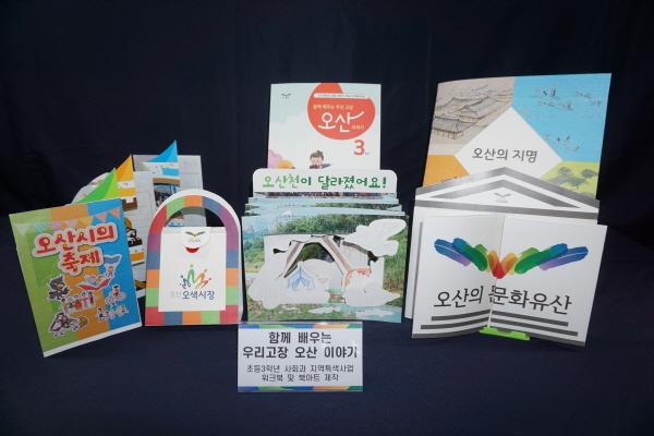 오산시에서는 초등학교 3학년 사회과수업에 오산의 내용이 부족하다는 학교 현장의 의견을 듣고 경기도교육청 지역특색사업 공모 사업으로 ‘함께 배우는 우리고장 오산이야기’ 워크북 및 북아트교구를 제작했다.