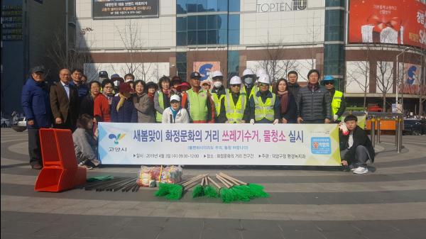 고양시 덕양구 환경녹지과는 지난 3일 공무원과 환경미화원, 청소 업체, 시민단체, 주민 등 90여 명이 참여한 가운데 ‘새봄맞이 화정 문화의 거리 대청소’를 실시했다.