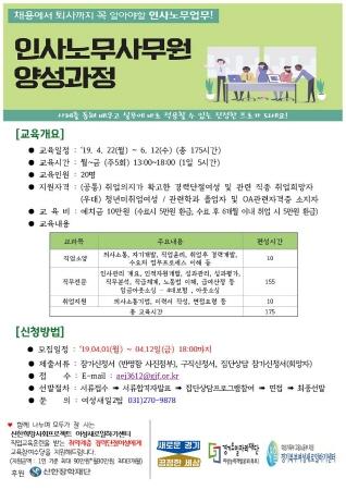 교육은 오는 22일부터 6월까지 총 175시간 실시되며, 교육생들에게는 직업소양 교육, 인사·노무 관련 직무전문 교육 등이 제공된다. 이력서 작성 교육이나 면접 요령 등 취업지원 서비스도 함께 제공된다.