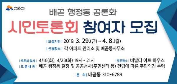 배곧 행정동 공론화 시민토론회에 참석하고 싶은 주민은 각 아파트 관리소와 배곧동주민센터로 신청하면 된다.