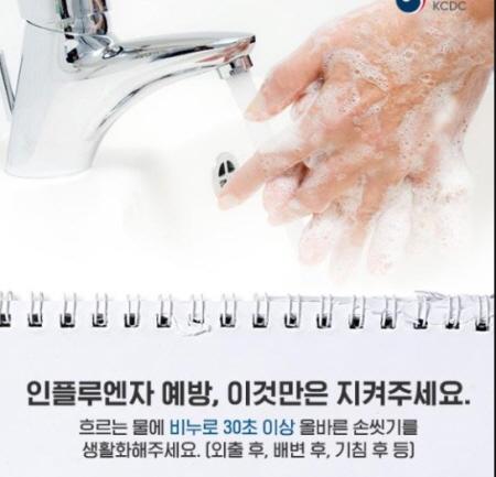 인플루엔자 예방을 위해서는 올바른 손씻기, 기침예절 실천 등 개인위생수칙 준수가 중요하다.