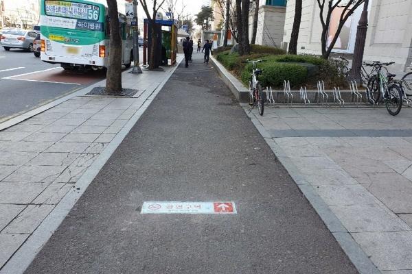 그러나 버스정류장 주변 흡연으로 인한 흡연자와 비흡연자 간 갈등 사례가 빈번하게 일어나고 있어, 간접흡연 피해와 흡연민원을 방지하고자 이용객이 많은 버스정류장 인근 바닥에 금연안내판을 새로 설치했다. 특히 기존 알루미늄 노면스티커 대신 내구성이 좋은 매립식 금연안내판을 설치해 금연구역 범위를 정확히 알 수 있도록 했다.