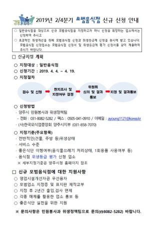 신청은 양주시청 홈페이지에서 신청서를 내려 받아 양주시청 위생정책팀이나 한국외식업중앙회 양주시지부에 제출하면 된다.
